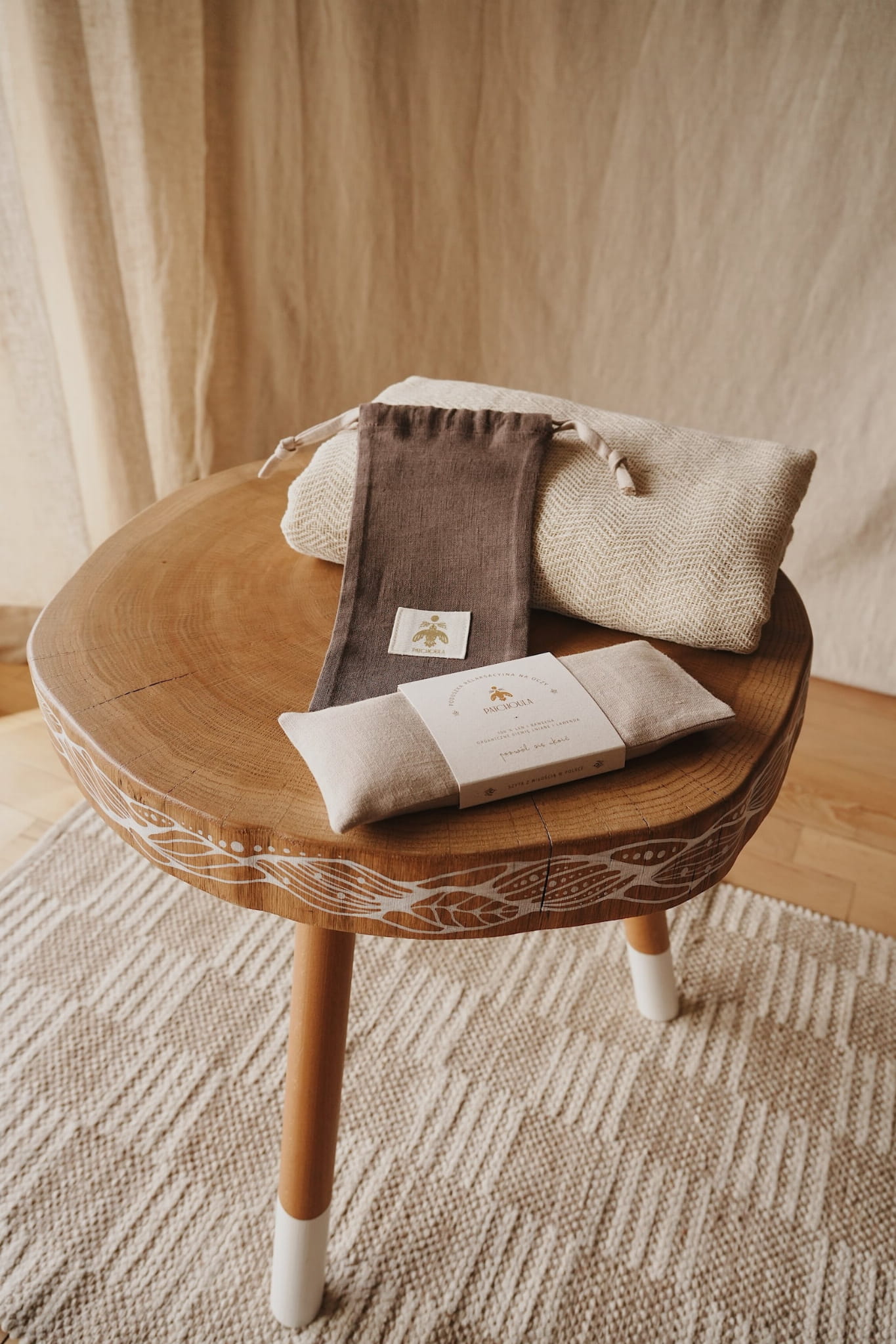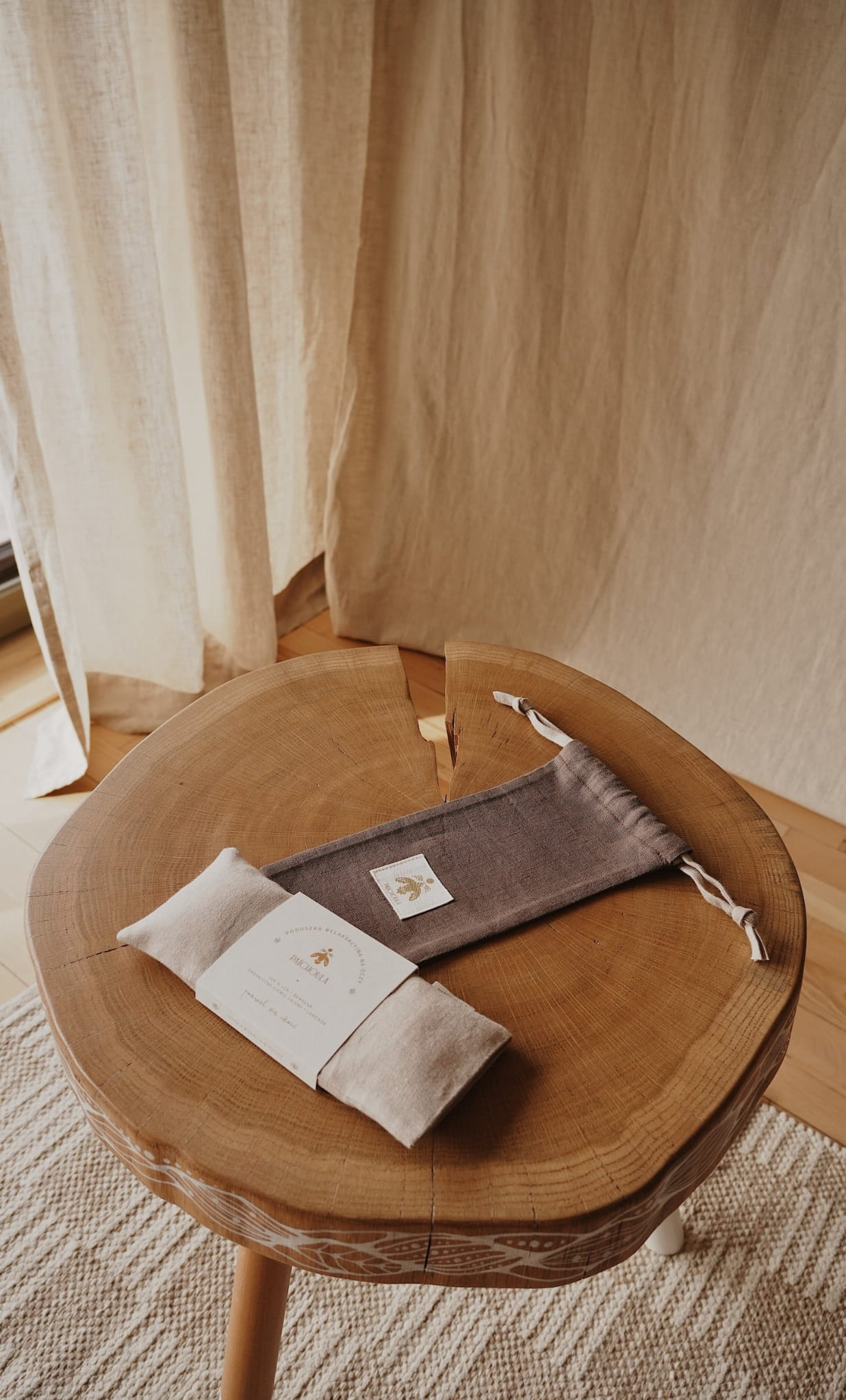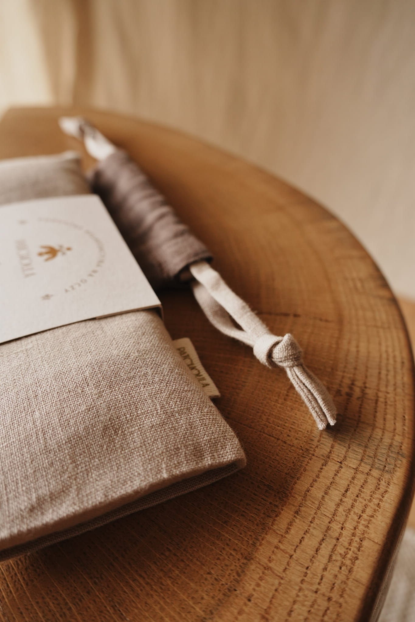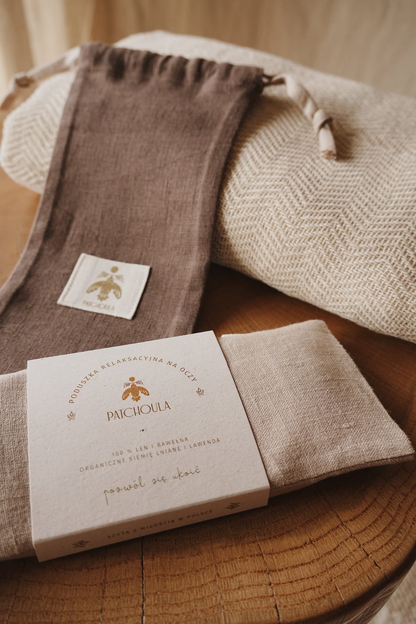 Lniana poduszka relaksacyjna na oczy i lniany woreczek