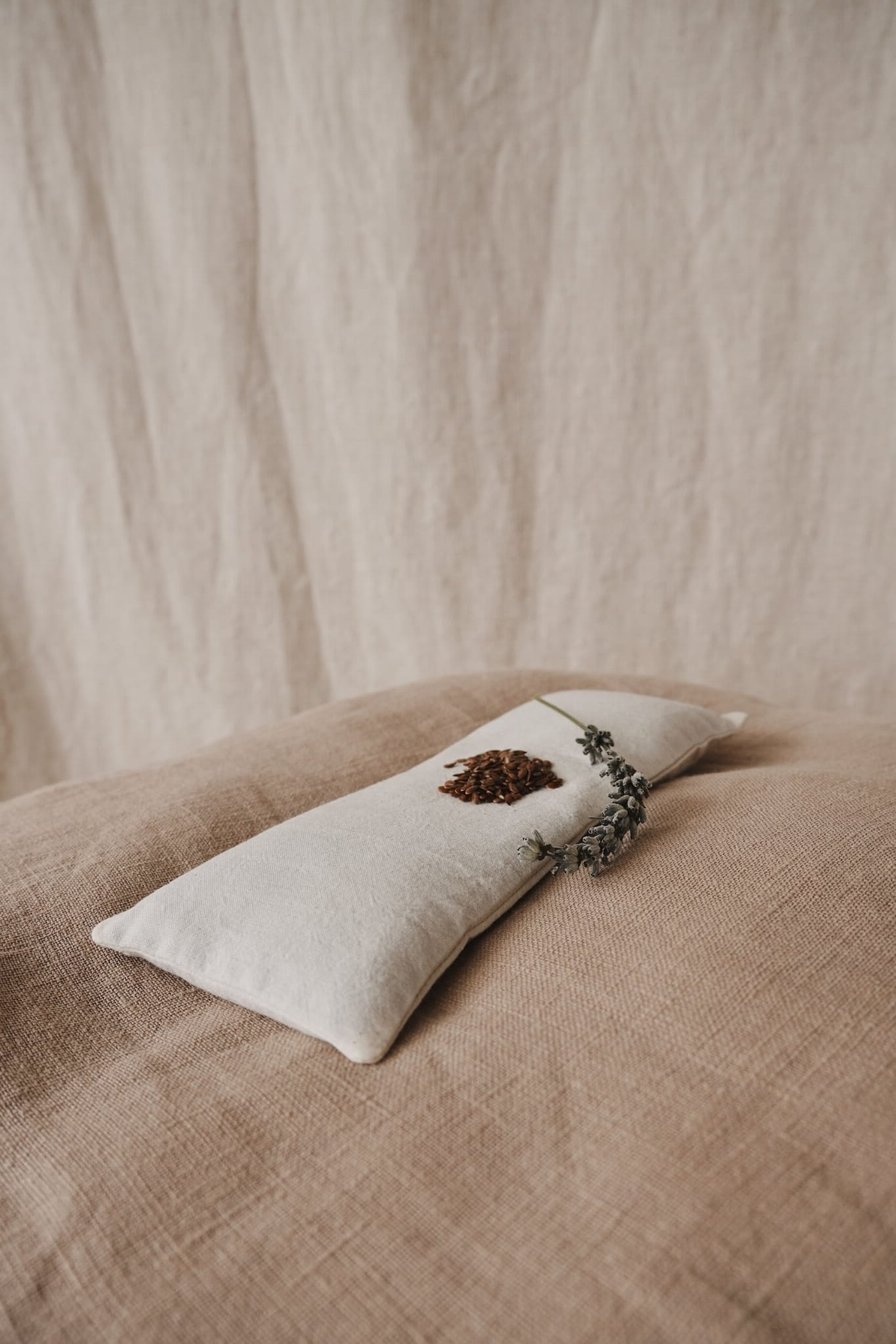 Delikatna, lniana poduszka relaksacyjna na oczy z ekologicznymi nasionami lnu i lawendą